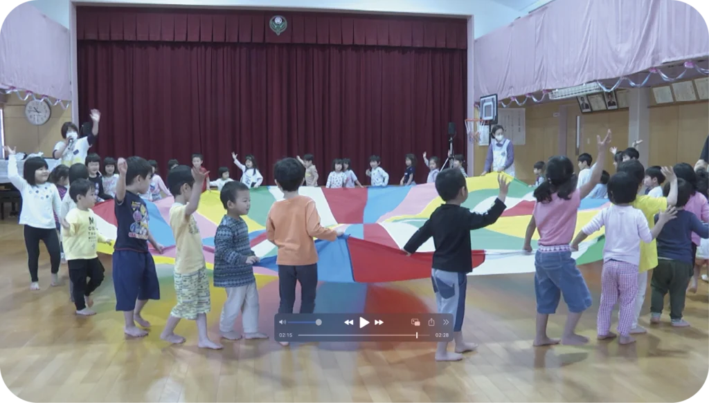 雨の日でも元気いっぱいに遊べる、広々とした講堂を備えています。行事や発表会だけでなく、日常の遊びや表現活動の場としても活用し、子どもたちがのびのびと体を動かしながら意欲や協調性を育みます。