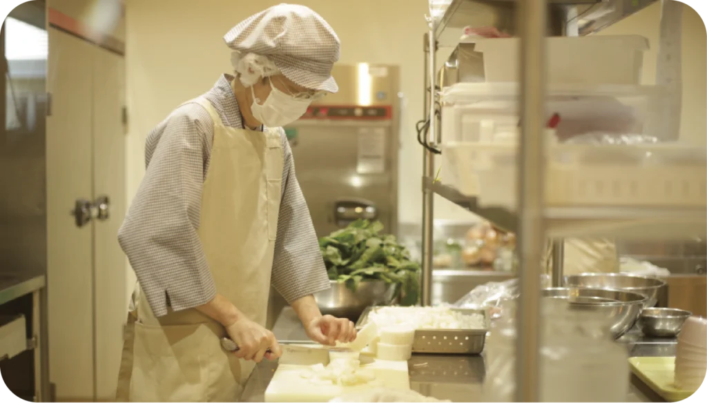 園内で調理した温かい給食やおやつを提供しています。素材の味を大切にし、月齢やアレルギーにも配慮した食事を通して、子どもたちの健やかな成長を支えます。毎日できたての食事を味わうことで、食への興味や安心感を育てています。