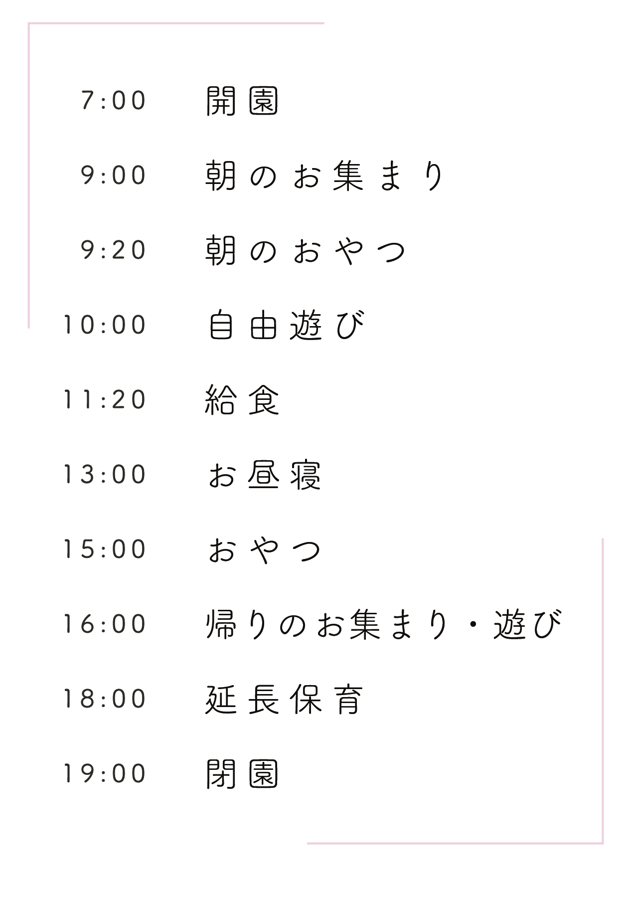 わかば保育園では、こどもたち一人ひとりの生活リズムや気持ちを大切にしながら、一日を過ごしています。遊び・食事・休息のバランスを考えた生活の流れの中で、安心して園生活を送れるよう丁寧に関わっています。
