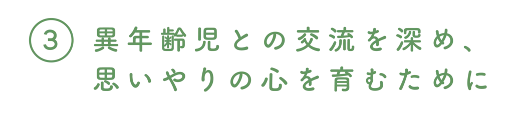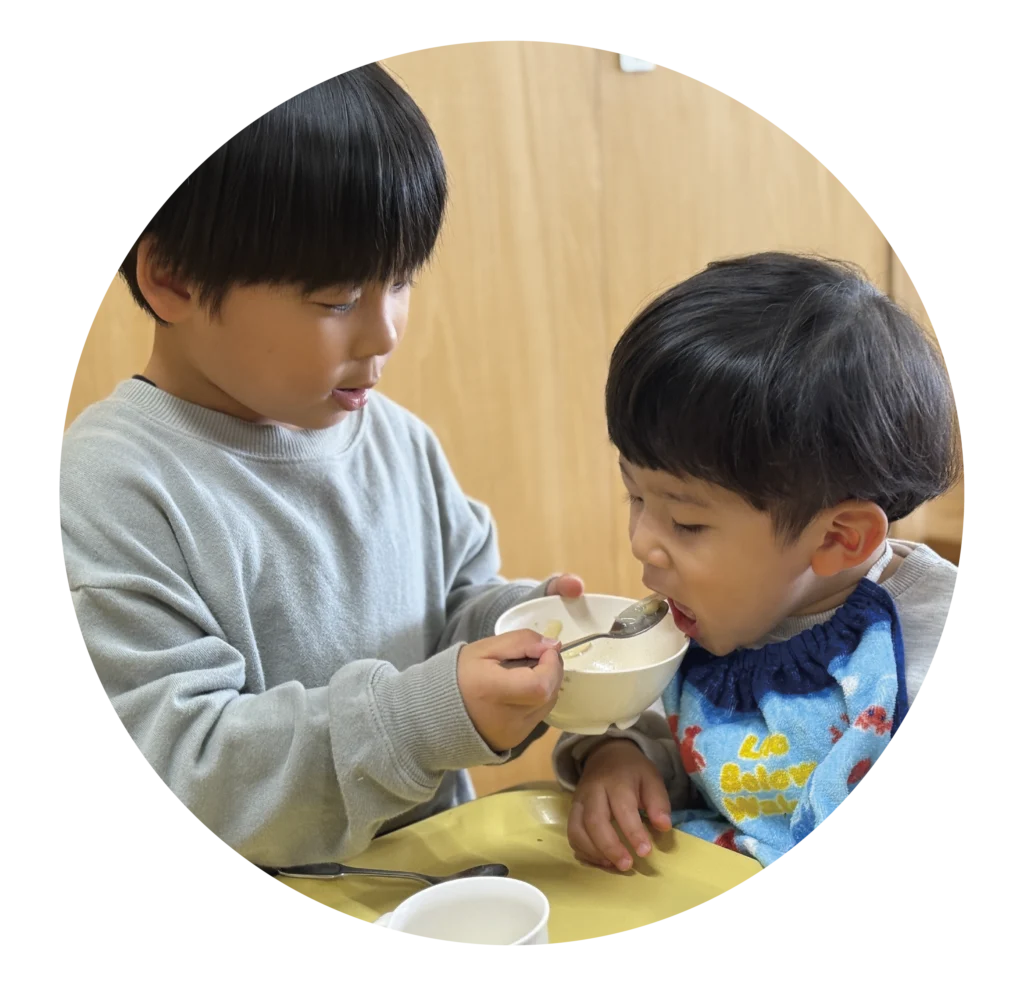 ・0~5 歳児が一緒に遊んだり食事をしたり、小さな子どもの世話をする等、自然に交流できる場を大切にします